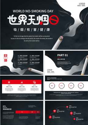 首页 > PPT模板>节日庆典>节日节气> 黑色简约世界无烟日宣传ppt模板