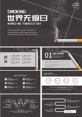 黑色极简世界无烟日ppt模板