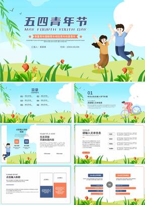 蓝色卡通小清新五四青年节PPT模板