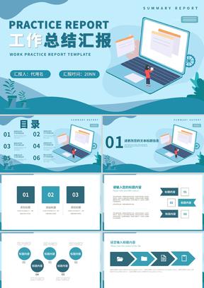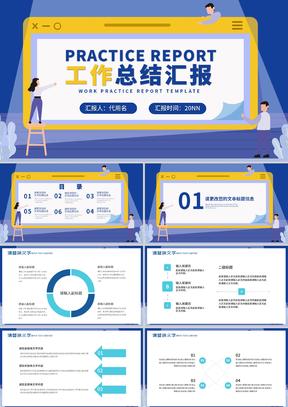 蓝色插画风总结汇报PPT模板