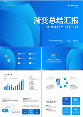 首页 > PPT模板>职场通用>总结汇报> 蓝色渐变风工作总结汇报PPT模板