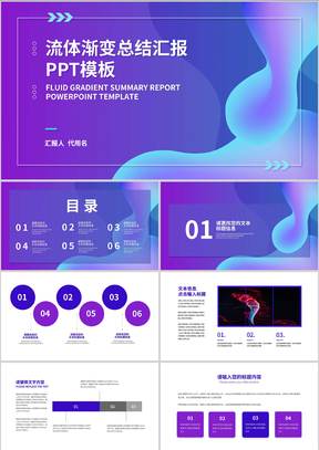 首页 > PPT模板>职场通用>总结汇报> 紫色流体渐变风总结汇报PPT模板