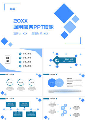 首页 > PPT模板>职场通用>总结汇报> 蓝色简约几何商务PPT模板