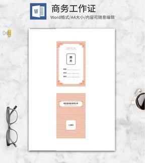 首页 > Word模板>Word设计>名片> 橙色商务工作证