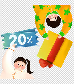 首页 > 素材元素>免抠元素>卡通手绘> 女孩手举优惠券礼盒